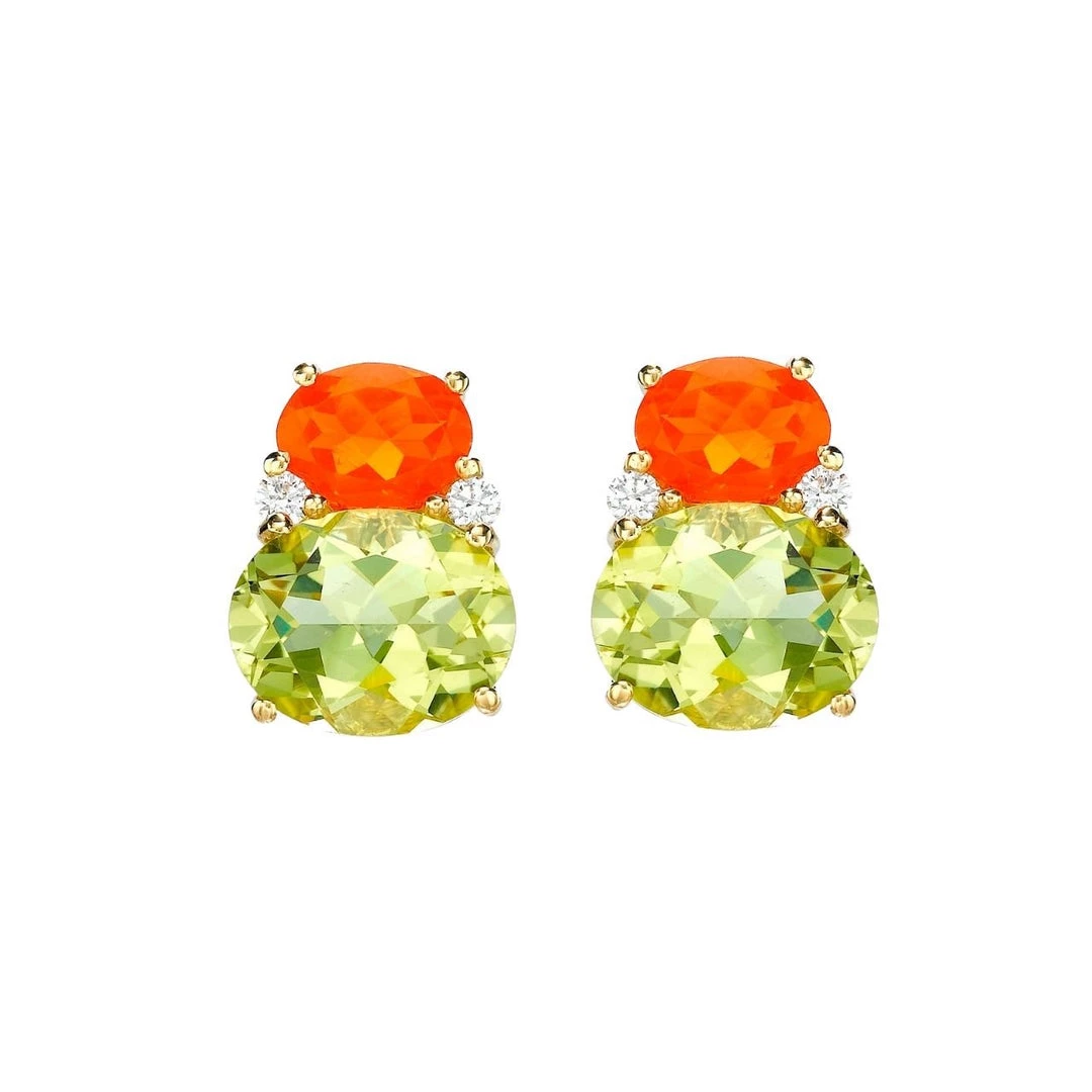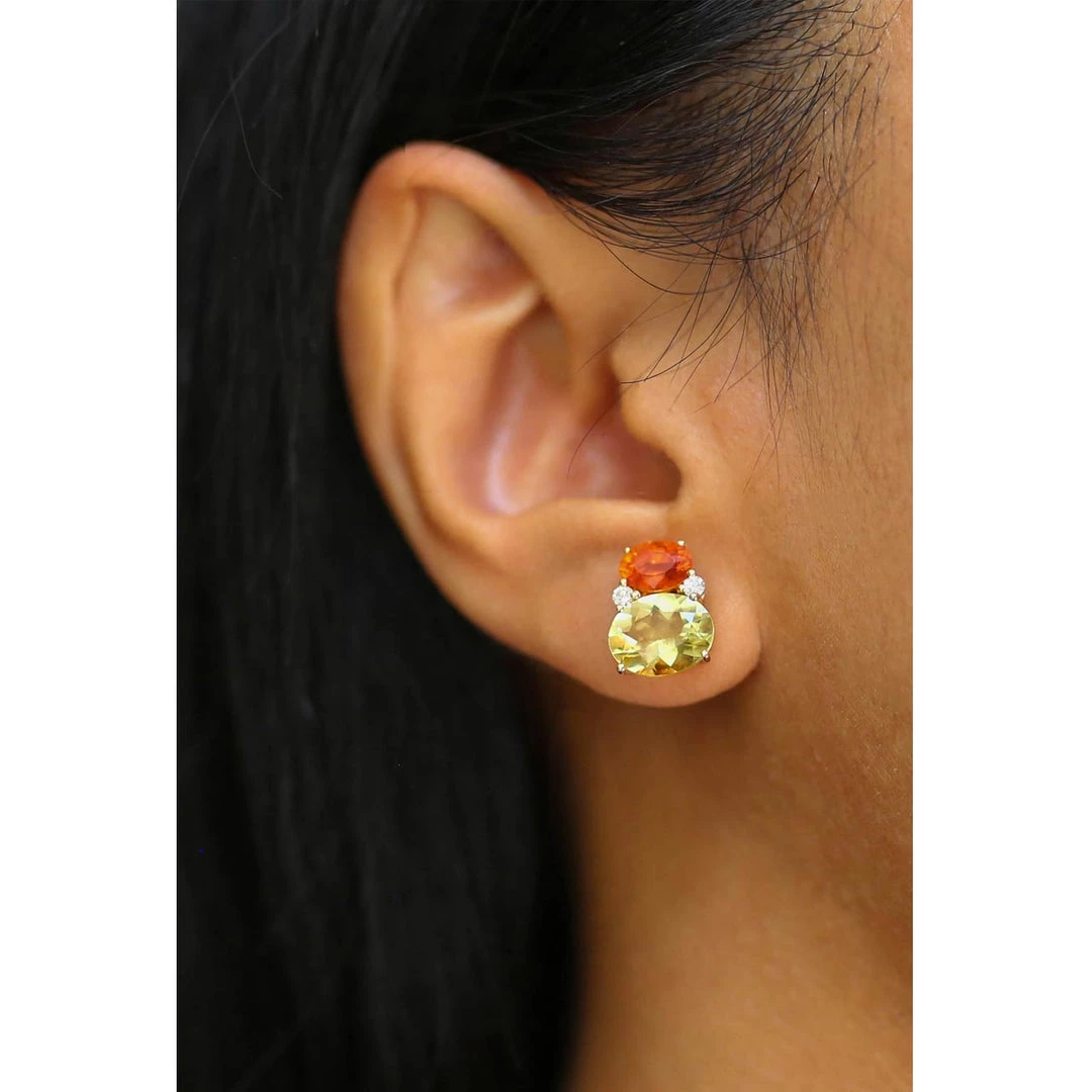 Kiki Classic Fire Opal and Lemon Quartz Double Oval Studs in Yellow Gold.